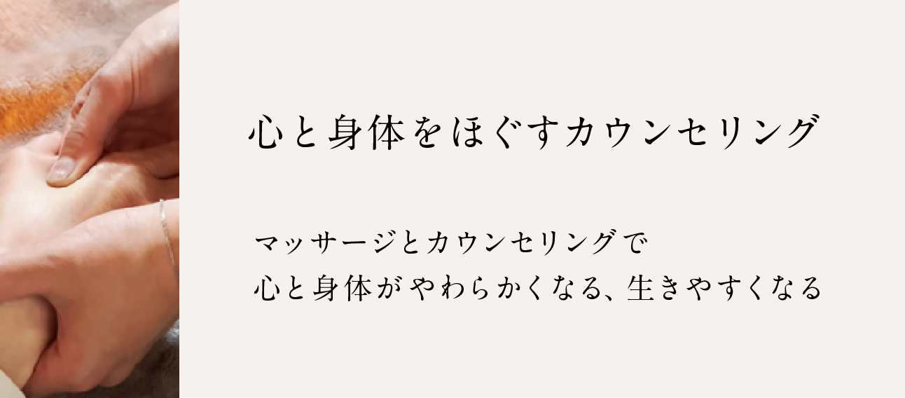 長年の不調やつらさには、思いもよらぬところに原因が隠れていることも。ナラティブセラピーを軸に、リフレーミングを中心としたカウンセリングによって考え方のクセや決めつけを見抜き、やわらかで健やかな心を一緒に育みます。